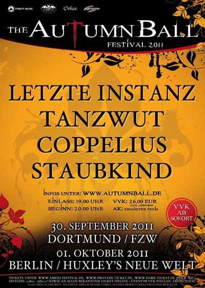 Zum Abschluss der Reihe am 02.10.2011 gastiert das Autumn Ball Festival dann mit einem modifizierten Programm im CAPITOL HANNOVER, wo neben LETZTE INSTANZ und STAUBKIND noch ZWEI WEITERE TOP ACTS zu sehen sein werden.