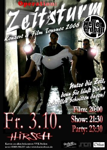 Die aktuelle Konzertreihe steht unter dem Motto: Operation: Zeitsturm. Der gleichnamige Spielfilm, welchen die Band gedreht hat, wird u.a. auch im Vorprogramm der Show gezeigt und erscheint zusammen mit der dazugehörigen Filmmusik auf DVD + Audio CD. Also Kino und Konzert! Die aktuelle MaxiCD \"Ich bin aus Plastik\", welche auch als rosa Vinyl-Single erschien, wird im Rahmen der Tournee vorgestellt. Welle: Erdball: Garant für die wirkliche, deutsche Computermusik! (Ganzer Text unter http://www.der-hirsch.de/index.php?id=376&beitrag_id=1498)
